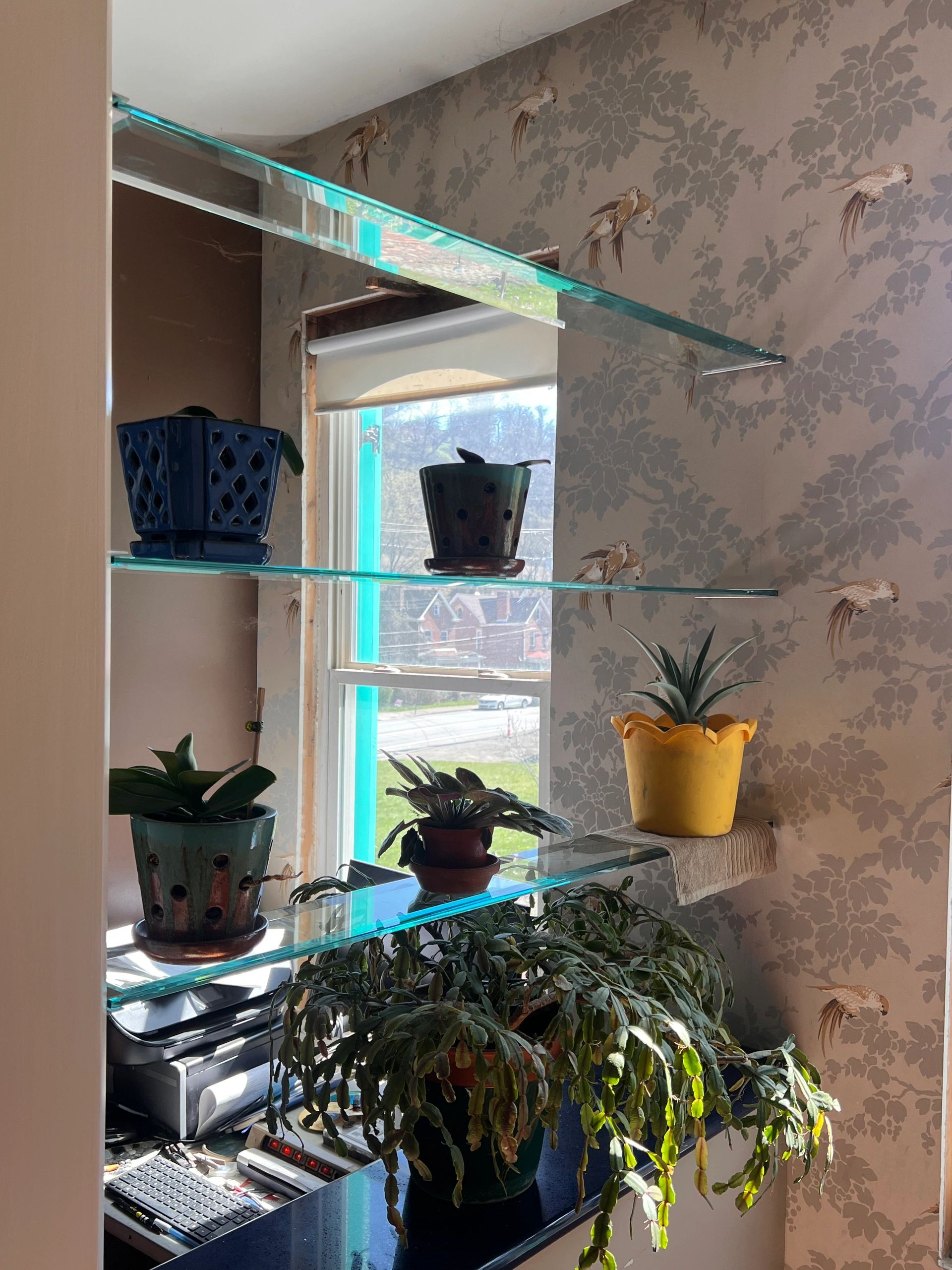 Low Iron Glass Shelving mounted with Clear Shelf Block Supports